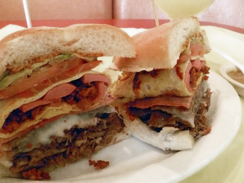 The undisputed king of tortas, "La Reyna" features a list of ingredients too long to list. It’s a definite “see to believe”.